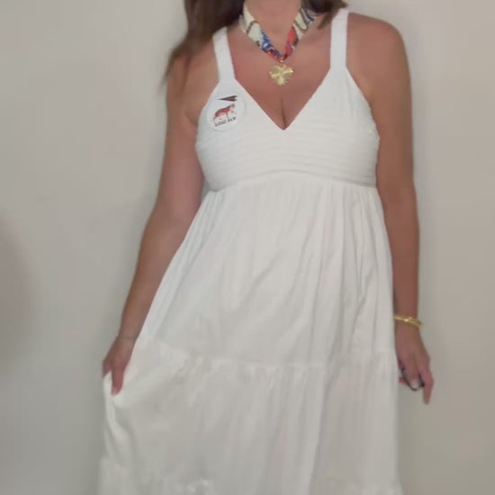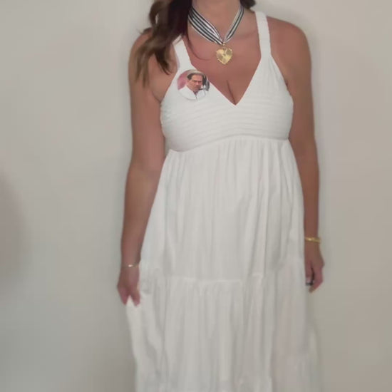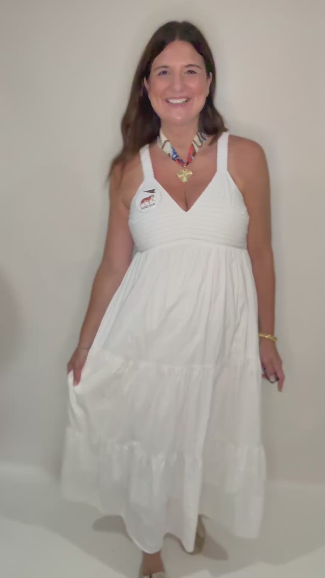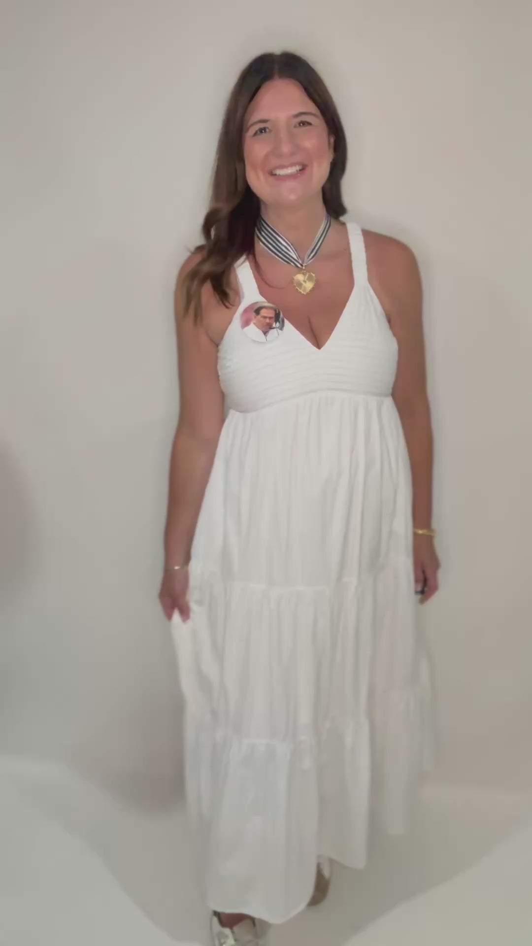 The Crisp Maxi Dress comes in a classic white and a beautiful lemon yellow. It features delicate pin-tuck detailing on the chest, an elastic back, and stretchy gathered straps. Made from poplin woven fabric, this dress also includes pockets and a tiered, lined skirt. Great styled for game day!!