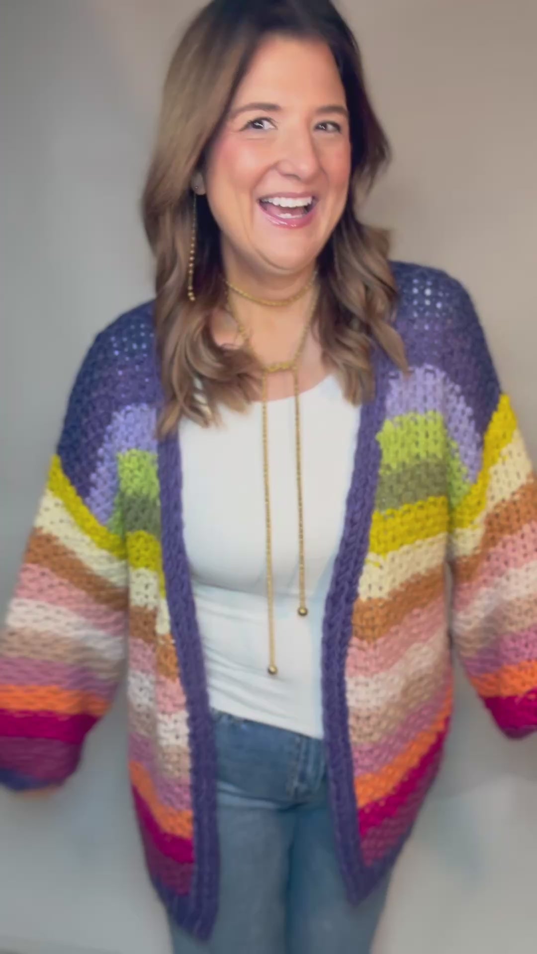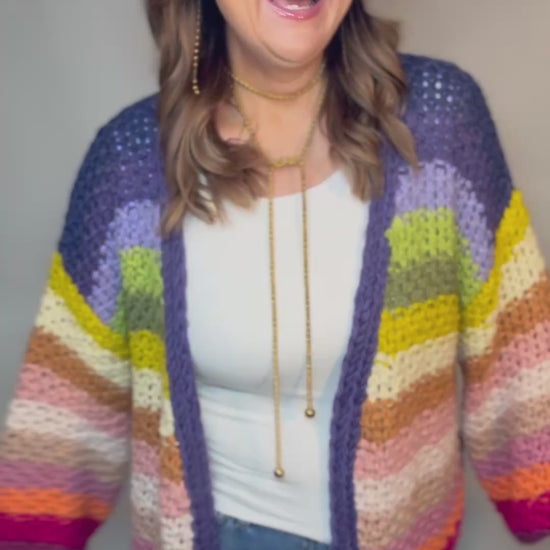 The Multi Stripe Cardigan Sweater Is so cute & matches so much! Fits oversized.