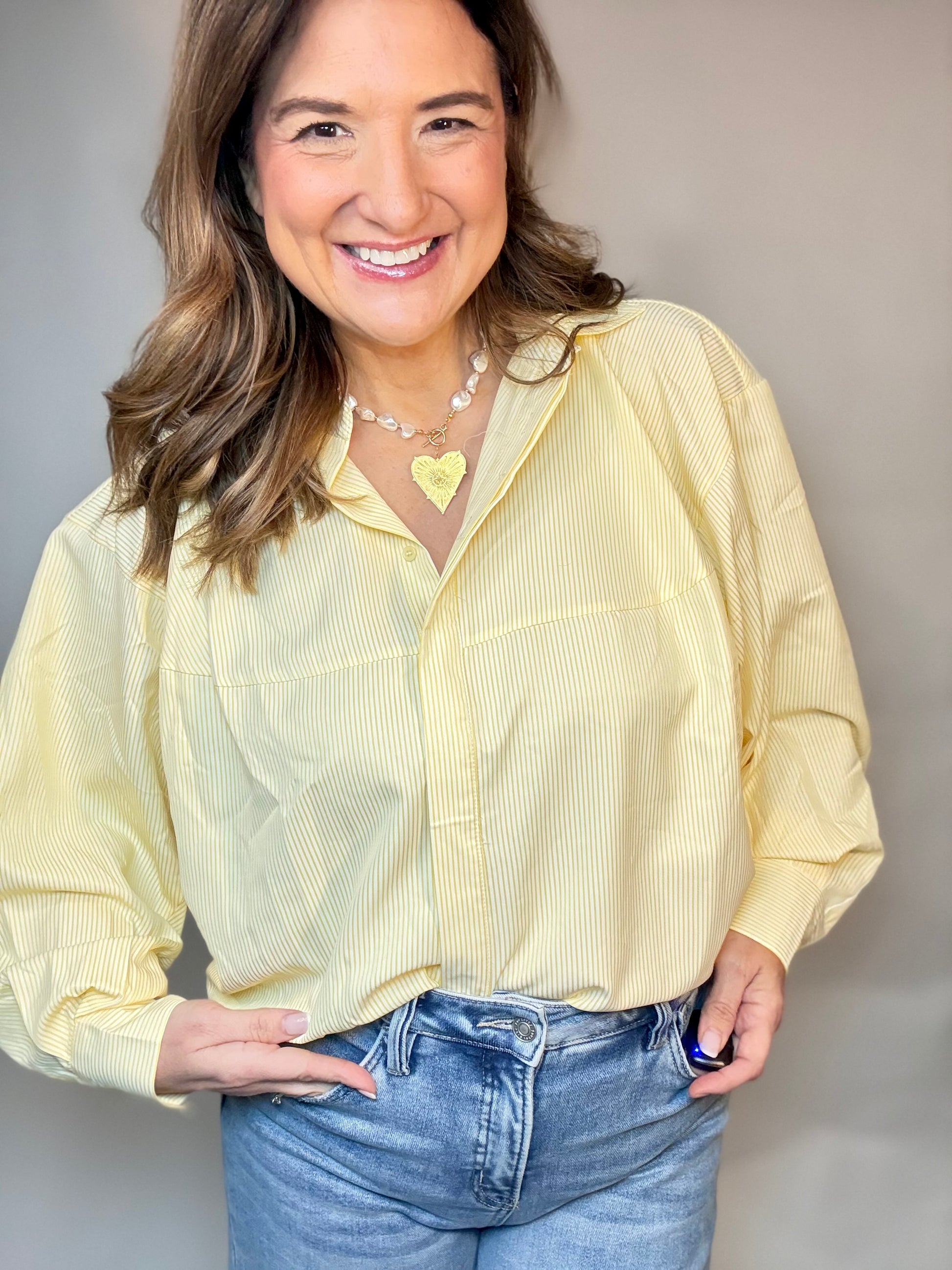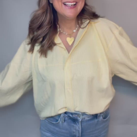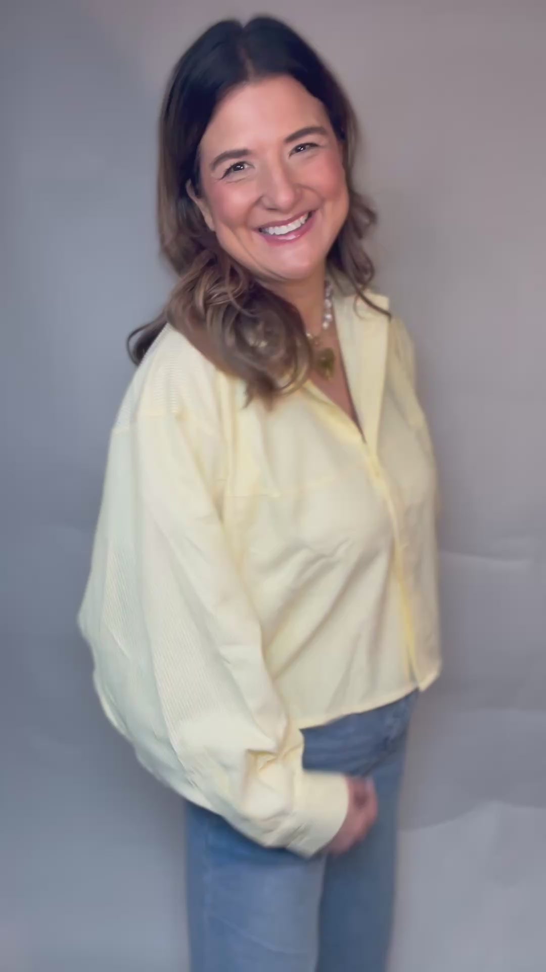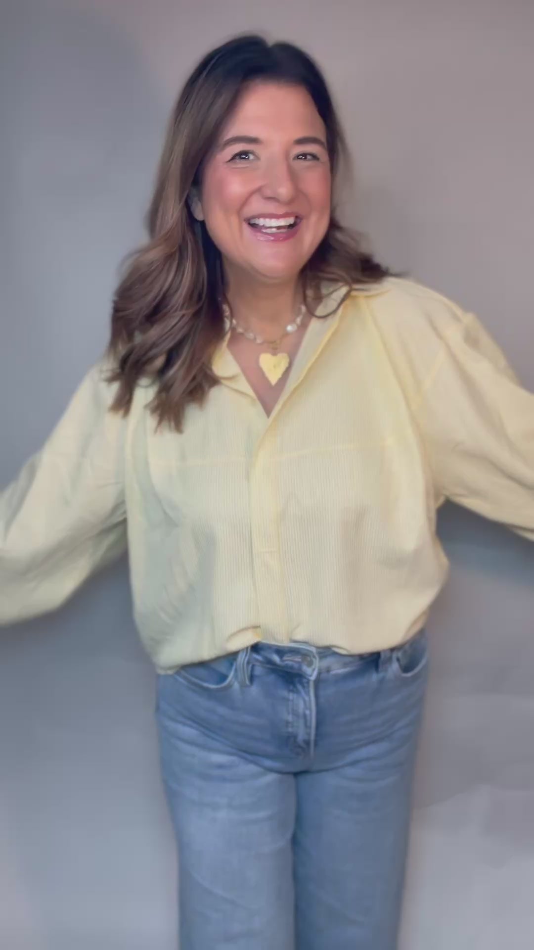 The sweetest yellow long sleeve button down is here!! Dress up or down and you will love wearing this happy top!